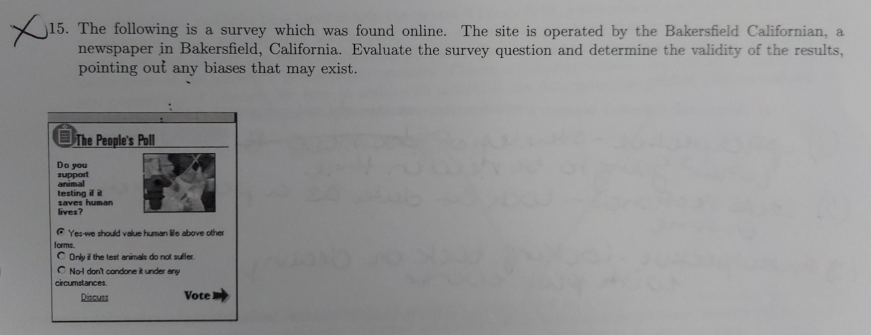 Solved X 15 15 The Following Is A Survey Which Was Found Chegg Com